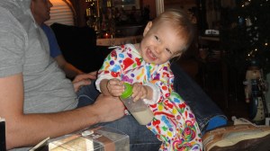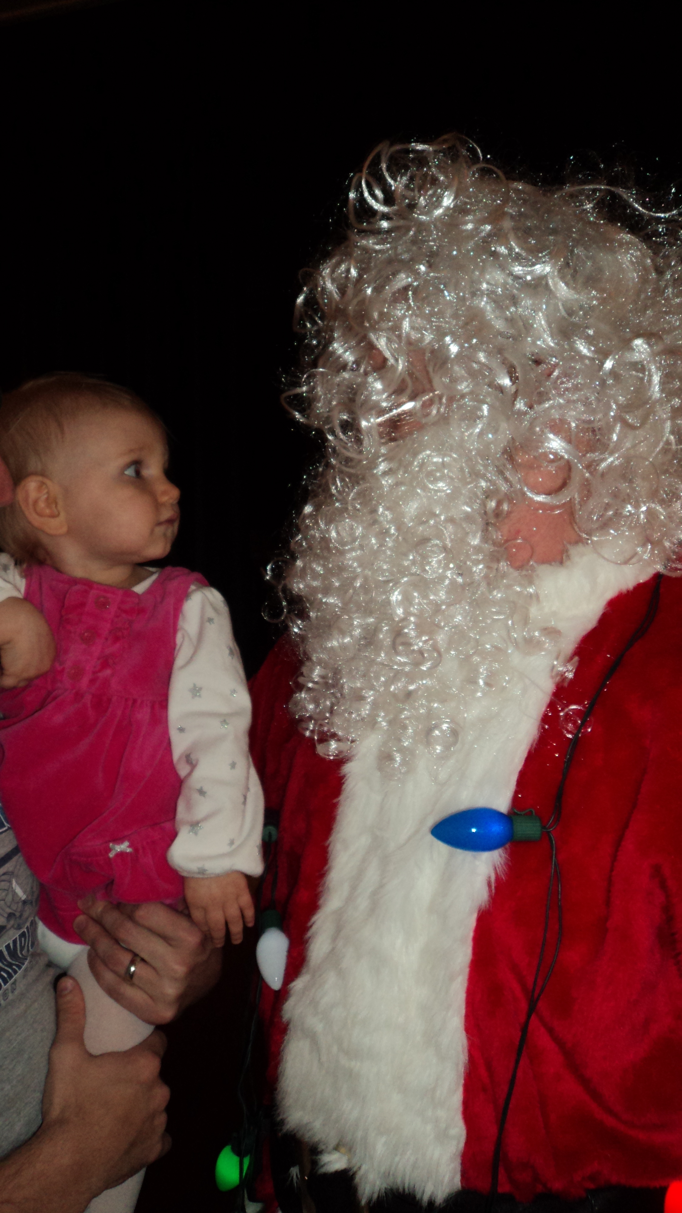 Myra Grace’s bedtime is 7 but she stayed up and didn’t get into bed til almost 9:30. One of our students was dressed up as Santa…Myra Grace wasn’t too interested (sorry Josh).
