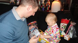 We read this book over and over again, so much so that Myra Grace could point to everything. Because of this, when my mom and I took her to the mall to get her picture made with Santa, she LOVED him and sat on his lap as he read her this book (hopefully he wasn’t too offended about it not all being about him).