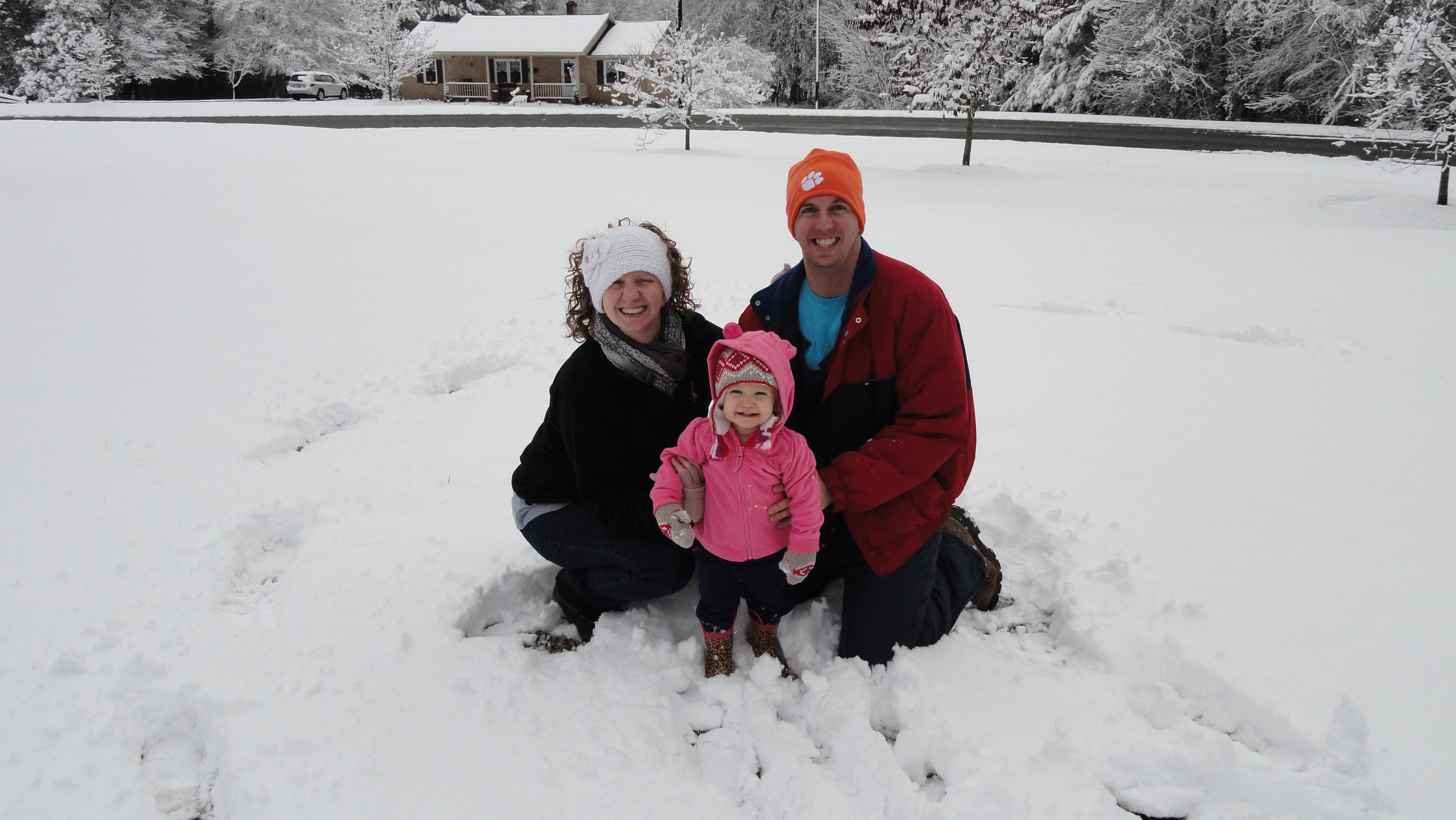 We were then off to Rich Hill to be with Brandon’s parents on the way to our Encounter Winter Conference in Greensboro, NC. On Christmas night it began snowing and when we woke up on the 26th it was a Winter Wonderland (not a common occurance in SC). Myra Grace had a little learning curve walking in her big girl rain boots in the snow but she enjoyed it!