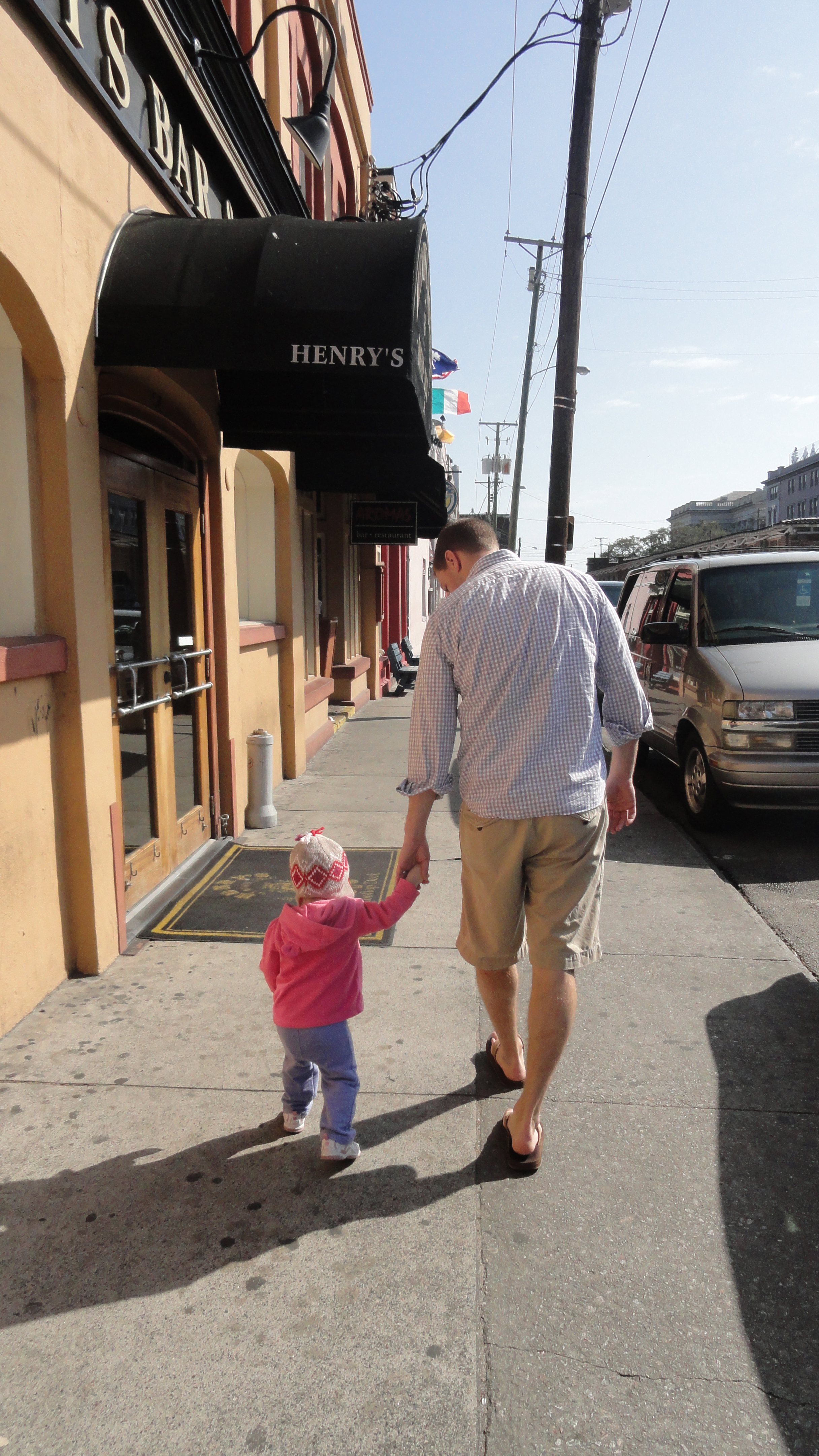 Then we walked to Waterfront Park where Myra Grace ran around and played airplane with daddy. The F16s were in town doing trial runs all week and Myra Grace has perfected her imitation of them.