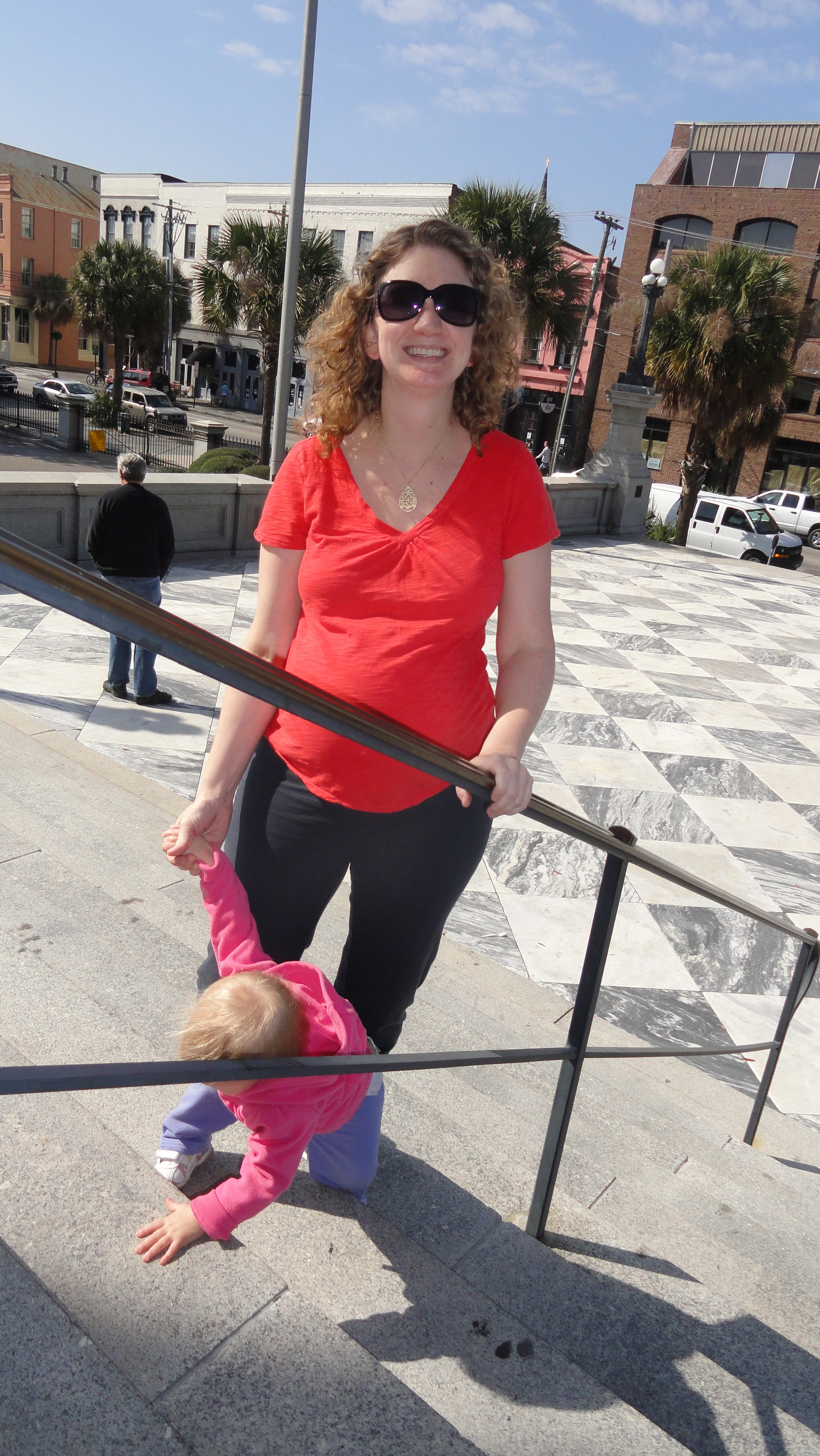 I wanted to do sets of stairs, so where better to go than the Customs House? Myra Grace had lots of fun practicing her stair walking skills.