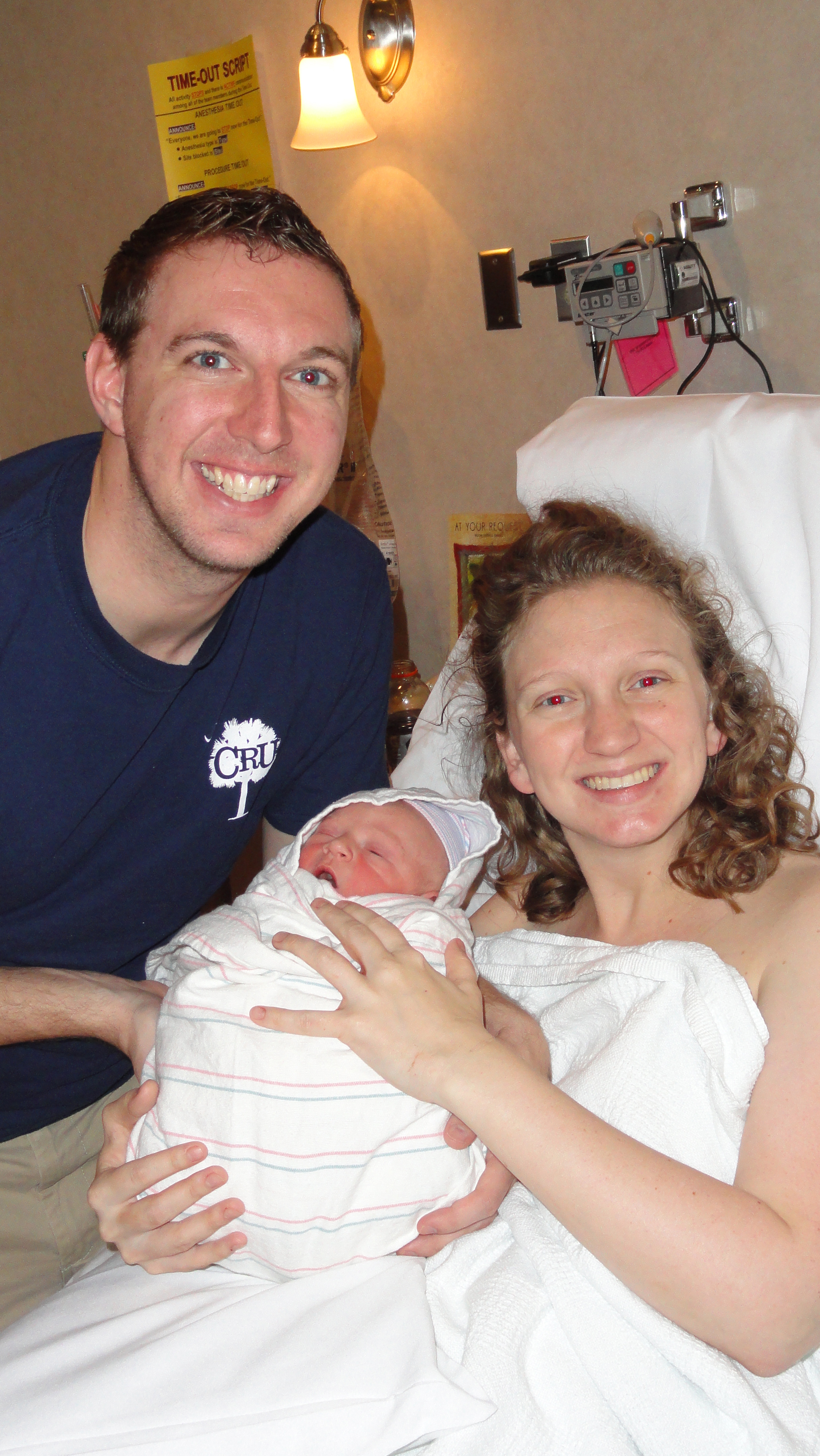 When I got home I told Brandon I didn’t think we would make it through the night so we decided to try to get a nap in. I slept off and on in between contractions until 2:45 when they became close enough to start timing (at this point they were 5 minutes apart). I woke Brandon up at 3:15 because the contractions quickly changed to 3 minutes apart and we called the doctor. Then we called my mom to come sit at the apartment while Myra Grace slept.