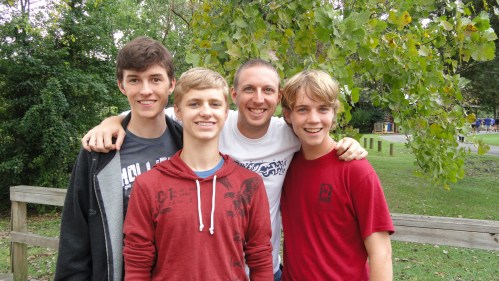 Brandon with three of the upperclassmen guys that come to his Bible study.
